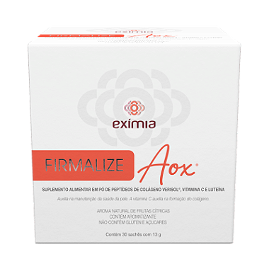 O Exímia Firmalize Aox é um suplemento alimentar que combina ingredientes selecionados para contribuir com a firmeza e elasticidade da pele. Cada sachê de 13g contém uma fórmula única, rica em antioxidantes, que auxiliam na proteção contra os danos causados pelos radicais livres.